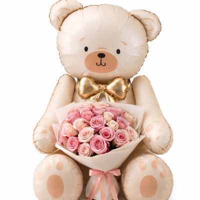 A large teddy bear balloon & 25 roses